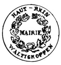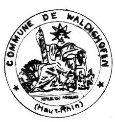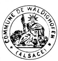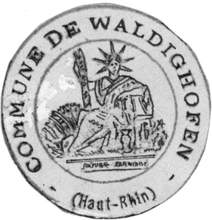 - Le sceau de la mairie en 1832 comporte une couronne de lauriers, le mot "Mairie" au centre, le mot "Haut-Rhin" au-dessus et le mot "WALTIGHOFFEN" en bas (et non Waldighoffen).