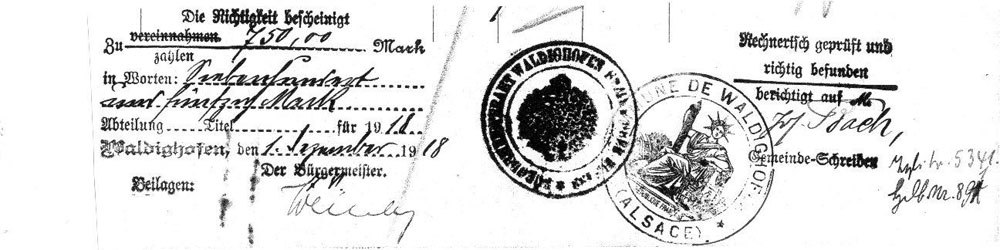 Extrait d'une facture de 1918-Cachets allemand et français côte à côte