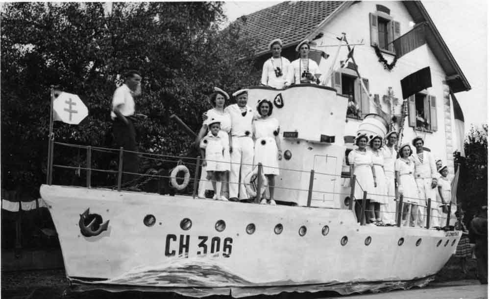 Char en forme de bateau, au cours de la Fête de la Libération, le 9 septembre 1945