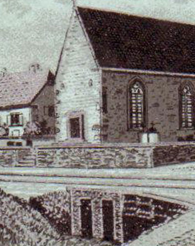 Cet aqueduc fut construit en 1891 pour consolider le rue et la voie ferrée au carrefour devant l'église. Au premier plan l'aqueduc du Willerbach, puis la voie ferrée, puis l'ancienne église et le presbytère entourés d'un mur. L'église actuelle date de 1904.