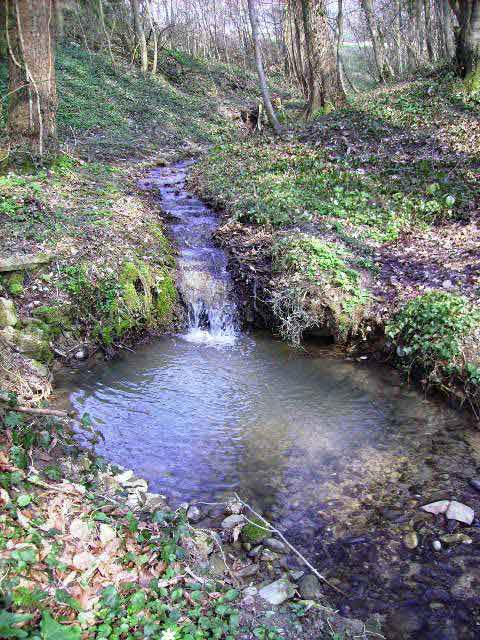 Photo de René Minéry prise dans la forêt : le Willerbach se faufile à travers le "Loëchlé".