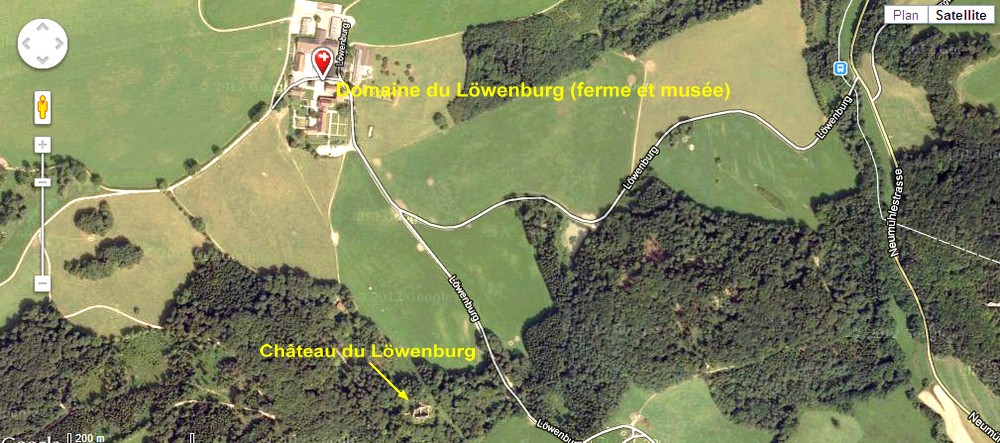 Le château et le domaine (la ferme) du Löwenburg avec Google Maps
