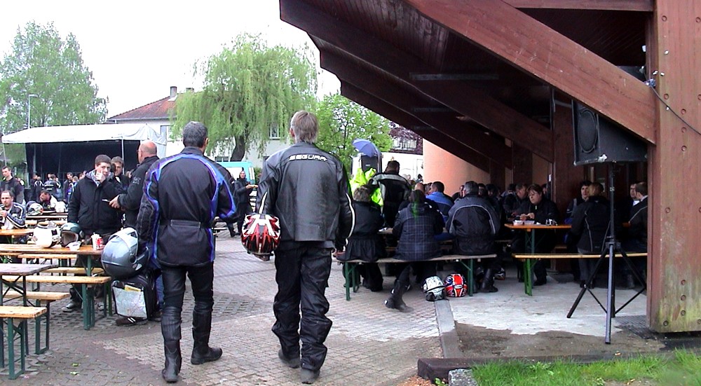 Devant la salle, la restauration est possible au Salon de la moto de Waldighoffen. L'auvent permet de se protéger.
