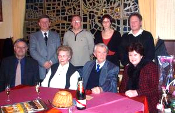 Photo prise dans le restaurant Figaro Bar en présence de Hélène et René Munck, leur fils Bruno et sa compagne, le maire Henri Hoff et 3 adjoints au maire.