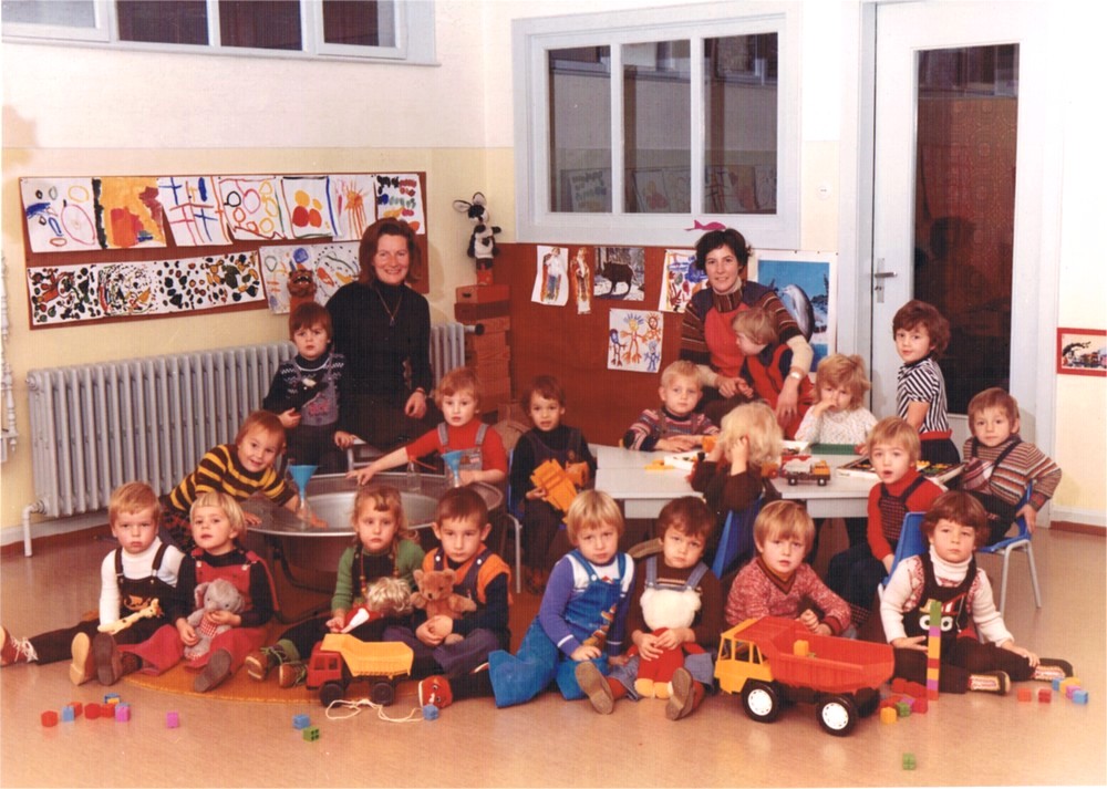 Classe de Melle Zeyer dans les années 1975 (enfants nés en 1973) avec Mme Michel
