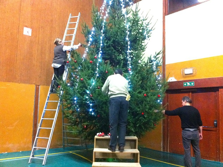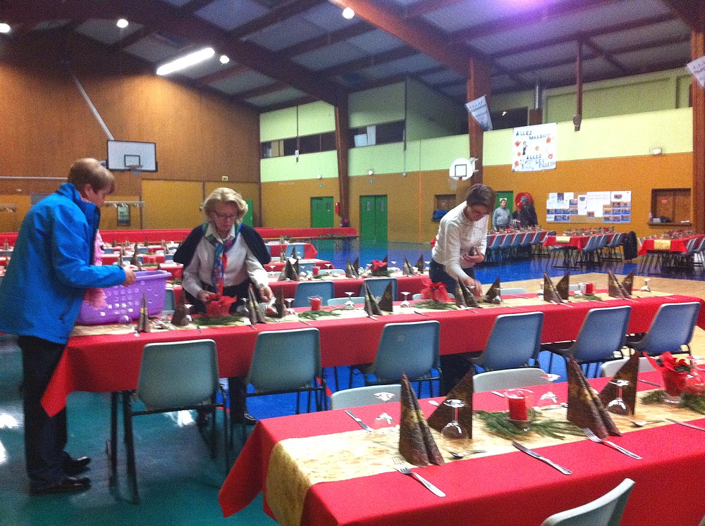 - Les tables se font toutes belles, préparées par les élus, leurs conjoints et des bénévoles, et mises en place par les ouvriers municipaux