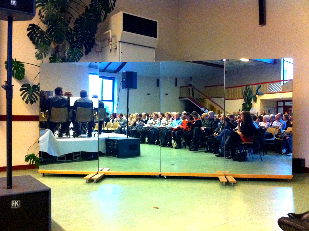 Le grand miroir de la salle des fêtes de Roppentzwiller reflète une partie des spectateurs du concert de la Concordia