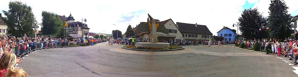 La place de Alle traversée par le Tour de France 2012 le 8 juillet. La course va arriver d'une minute à l'autre.