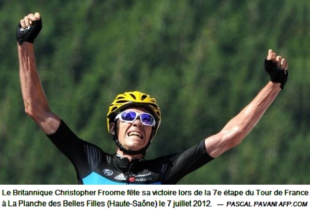 Vous êtes ici : Accueil Au fil du temps… Souvenirs Dossier photo pour souvenirs Tour de France 2012 Christopher Froome à la Planche des Belles Filles (Afp Pascal Pavani)