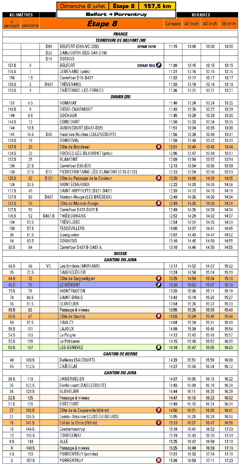 Tour de France 2012 étape 8 horaires détaillés de passage