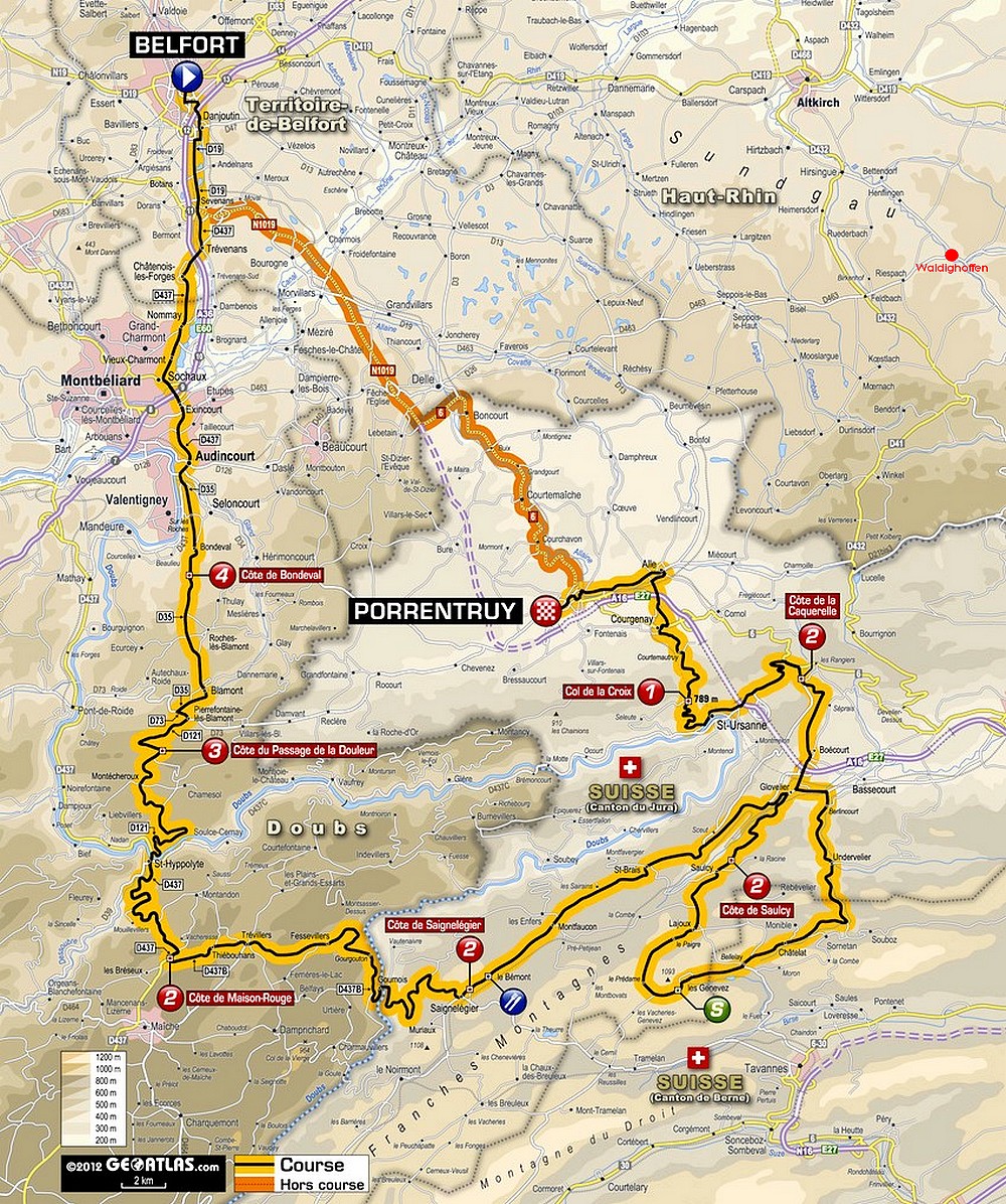 Tour de France 2012 Carte étape 8 juillet Belfort-Porrentruy (157,5 km)