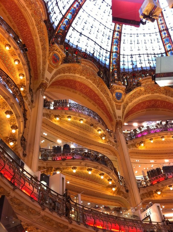 - En octobre 1912, le magasin est inauguré. Il a cinq étages, des balcons et une grande coupole. Celle-ci, inspirée par le style byzantin, a 33 mètres de hauteur, est constituée de dix faisceaux de vitraux peints, enserrés dans une armature métallique richement sculptée de motifs floraux.