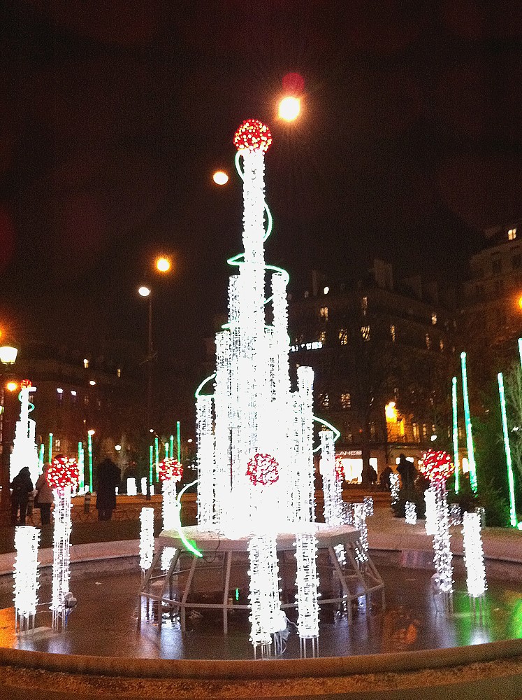 - Une des 6 très belles illuminations autour du Rond-Point. Le plan d'eau était gelé !