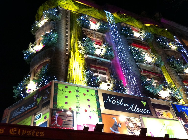 - La Maison d'Alsace, sur les Champs Elysées, est cette année parée des couleurs de la ville de Mulhouse. C'est magnifique !