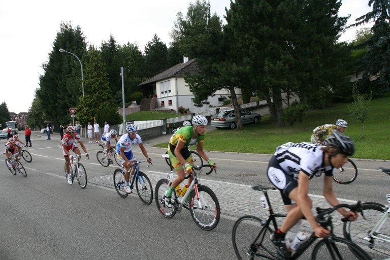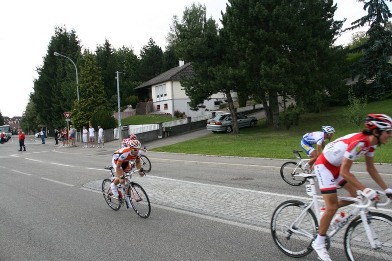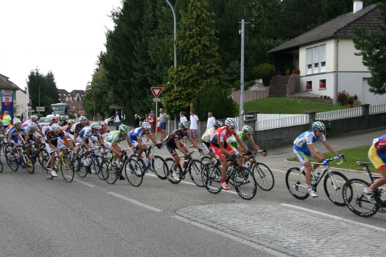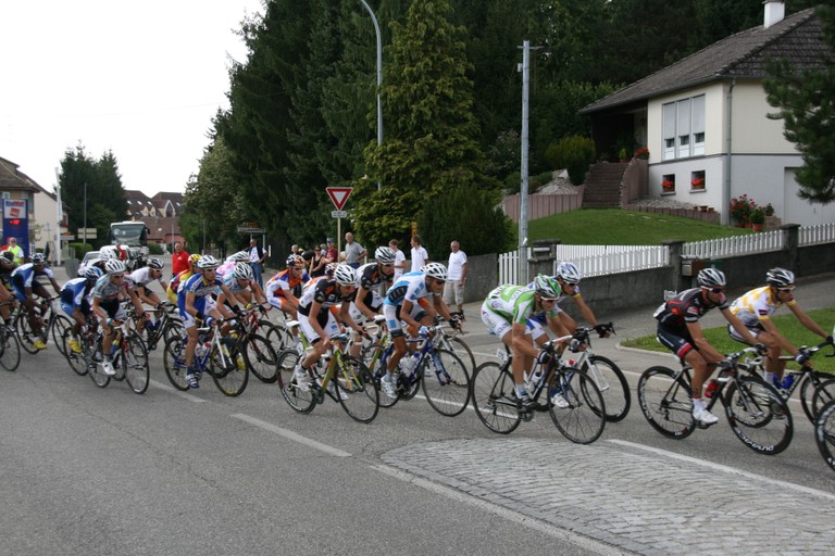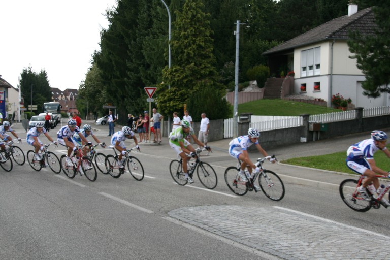 - Le début du peloton lors de la 4ème étape du Tour d'Alsace 2011, passant à côté de la Commune de Waldighoffen.