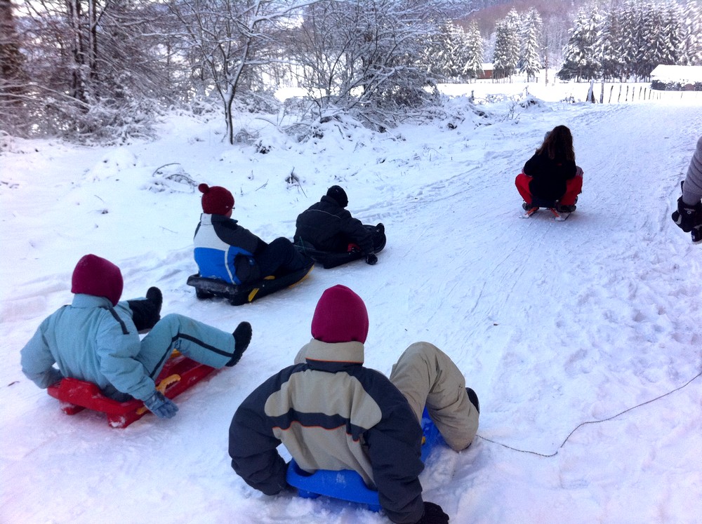 Les enfants amorcent la descente sur les hauteurs de Waldighoffen le 27 décembre 2010