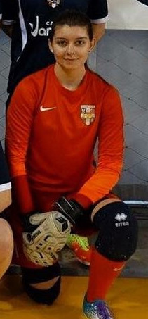 Photo de Tatiana Brady en tenue de gardien de but, dans une des équipes où elle a joué.