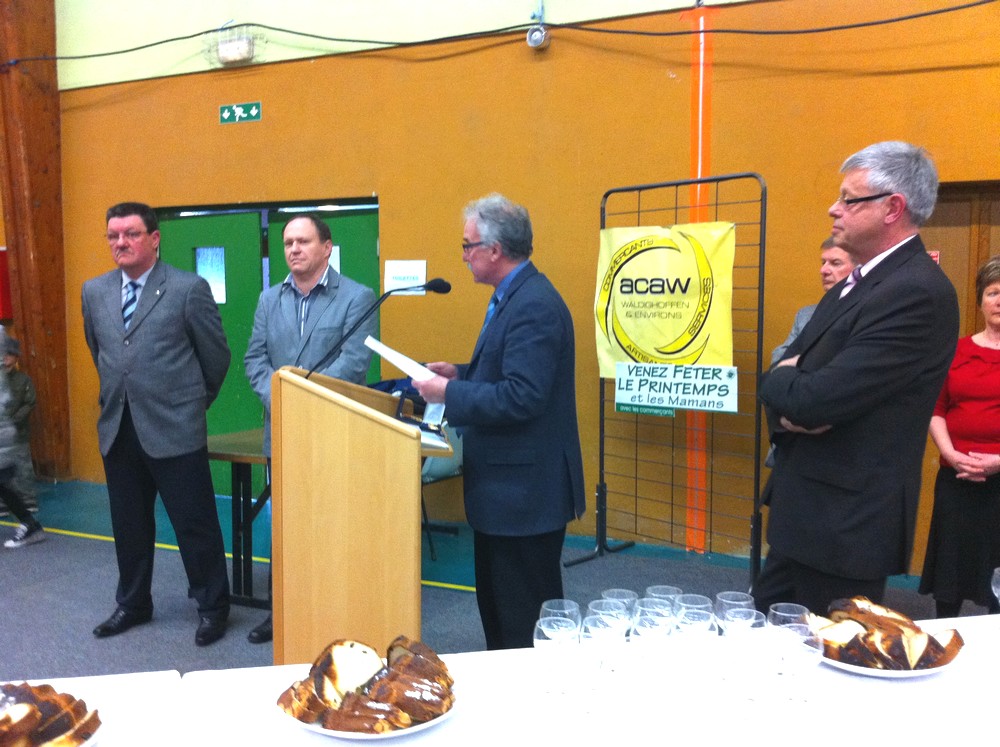 De gauche à droite : Laurent Scherrer, Patrick Gussy, Armand Reinhard et Henri Hoff avec ses adjoints J.Claude Schielin et Evelyne Herrmann.