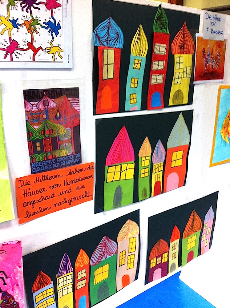 Quelques dessins d'élèves de l'école de Waldighoffen exposés lors de la fête de fin d'année de l'école.