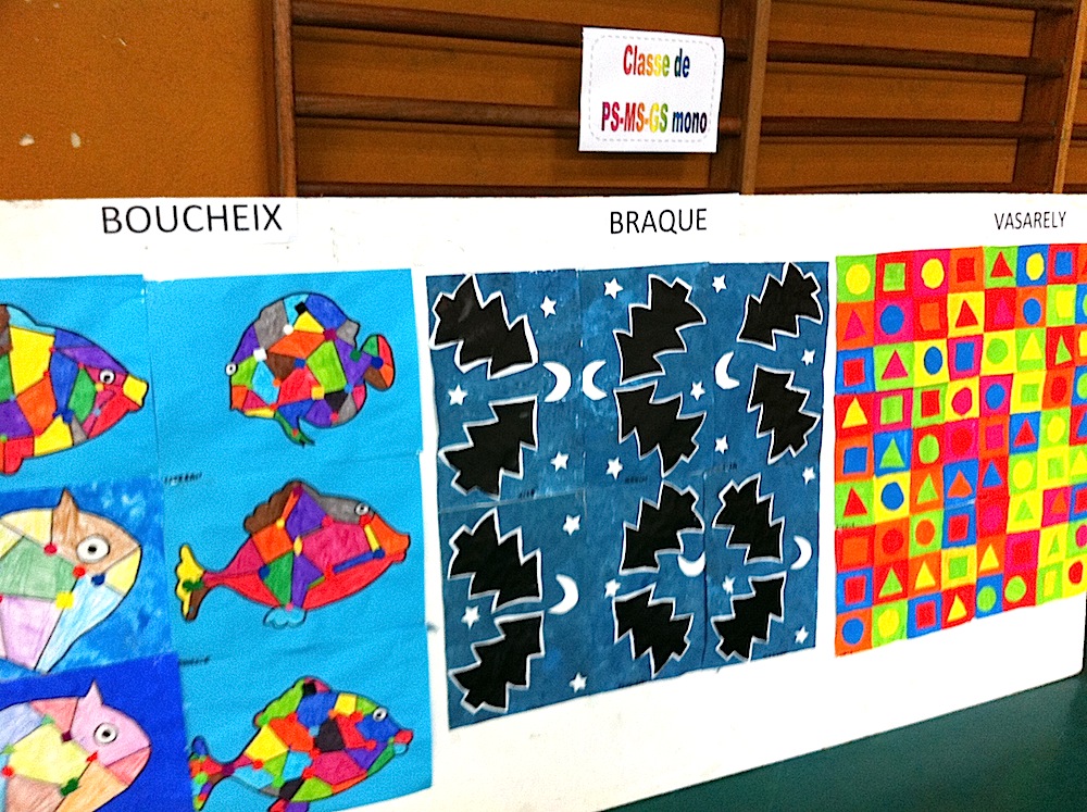 La classe des petits, moyens et grands monolingue de l'école de maternelle de Waldighoffen ont exposé leurs dessins d'après de grands peintres comme Braque, Boucheix ou Vasarely.