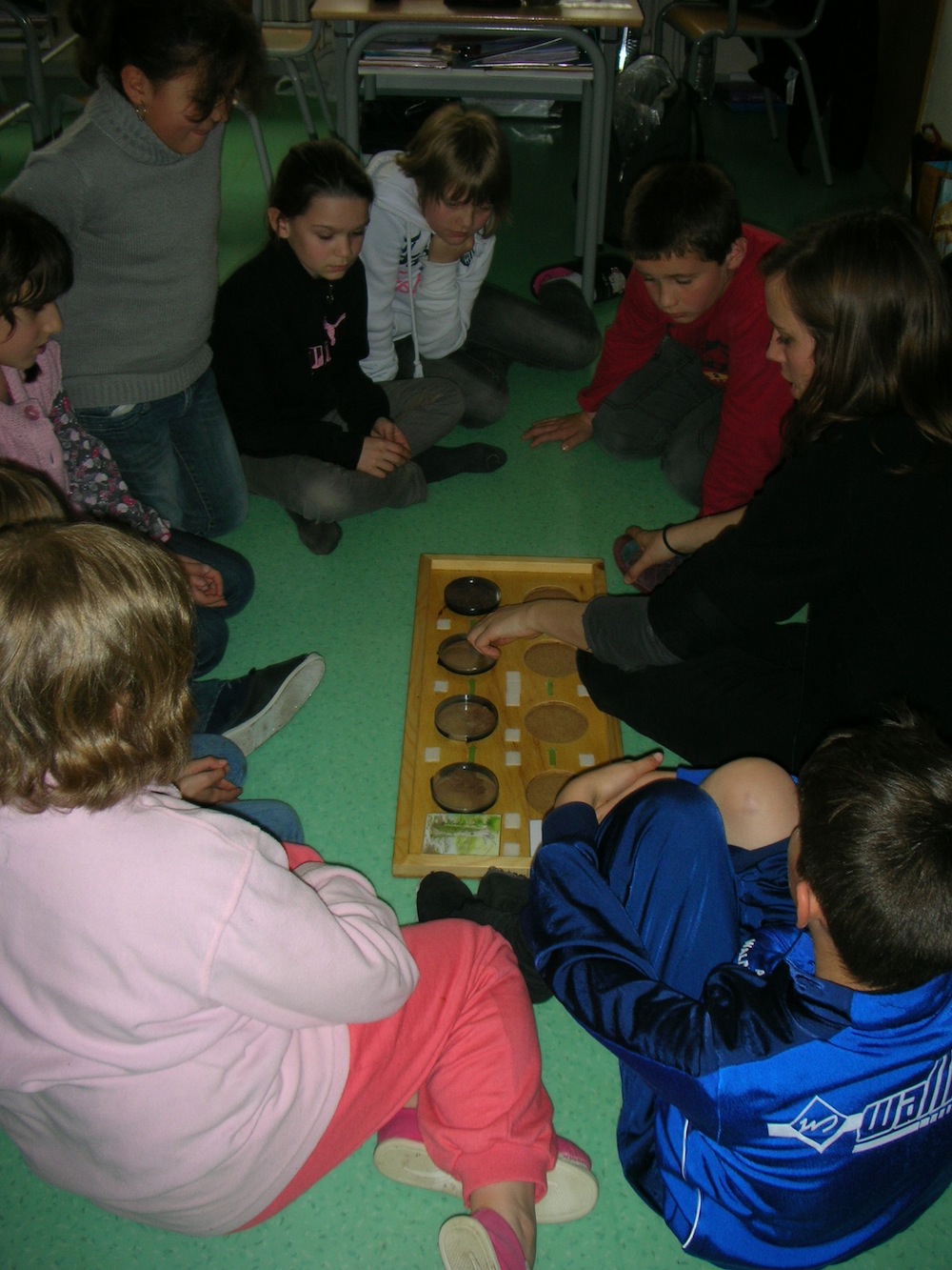 Etude des décomposeurs par les élèves de la classe CE2-CM1 monolingue : ces organismes qui décomposent les feuilles mortes.