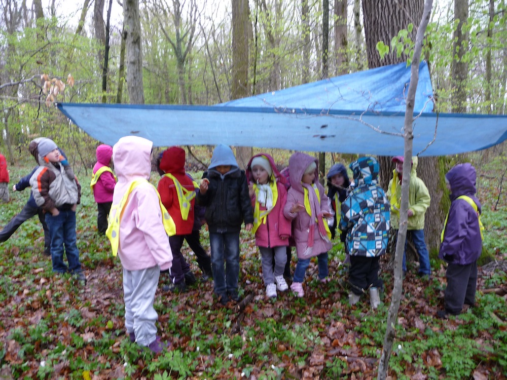 ... une petite averse... pas de soucis... Estelle nous a construit un abri de fortune pour nous protéger.