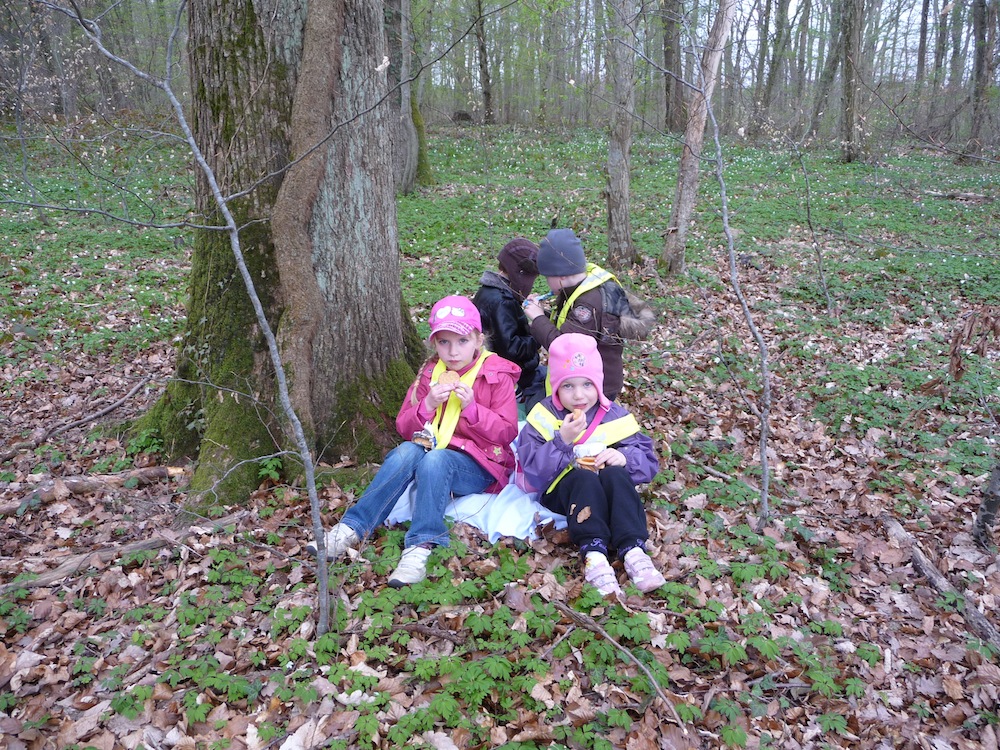 Une sortie en forêt ça donne faim. Alors miam miam un bon goûter au pied de notre arbre.