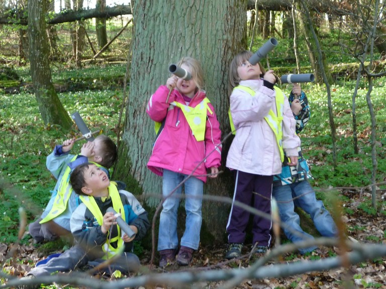 - Equipés de longue-vues, les élèves de la classe de grande section maternelle de Waldighoffen sont à l'affût dans la forêt pour observer les oiseaux.