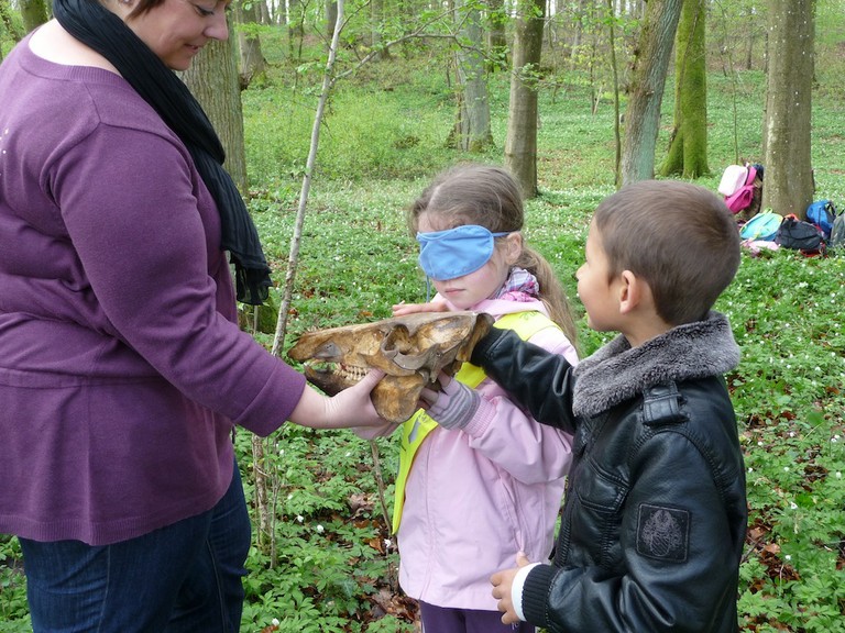 - Pas de doute, les enfants ont de l'imagination! Ils étaient persuadés de toucher une tête de mammouth... ce n'était, hélas, qu'un crâne de sanglier bien de son époque.