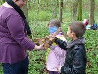 - En file indienne pour découvrir les différentes traces des animaux de la forêt.