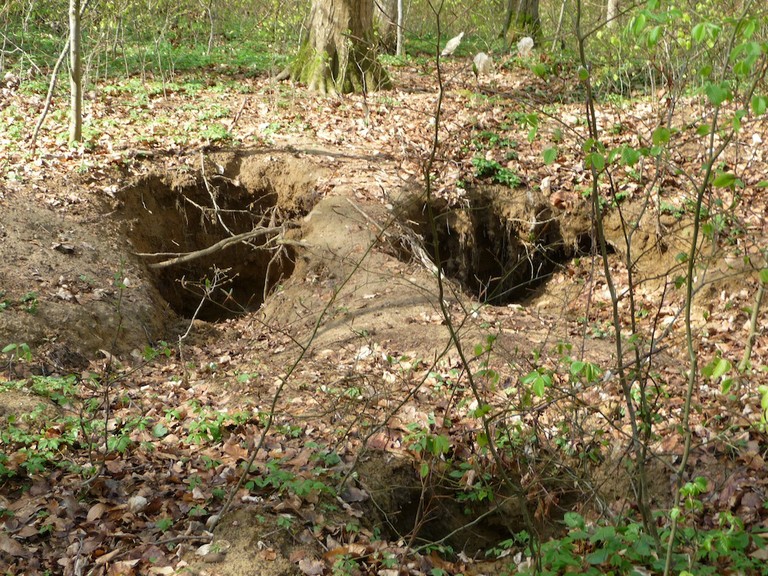 - Nous avons trouvé un magnifique terrier de blaireaux. Il y a beaucoup d'entrées (ou de sorties) tout autour. Ces trous s'appellent des gueules. Eh oui, ici ce n'est pas un gros mot!