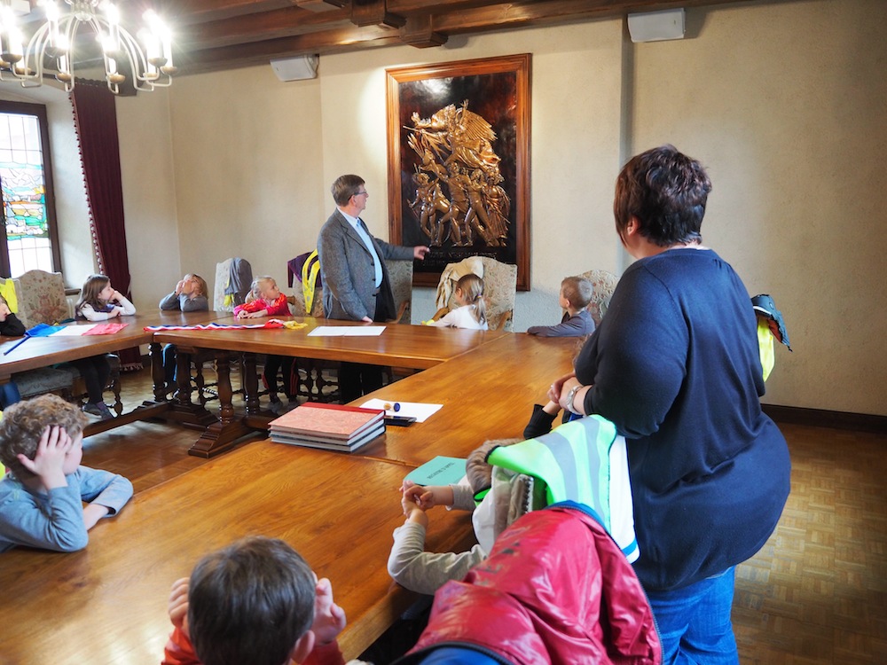 Le Maire Jean-Claude SCHIELIN donne des explications sur le tableau présent dans la salle d'honneur de WALDIGHOFFEN.