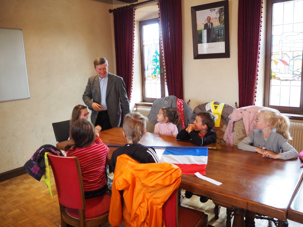 Le Maire a dit bonjour et serré la main à chacun des élèves de la classe des grands/CP bilingue venus découvrir les symboles de la République.