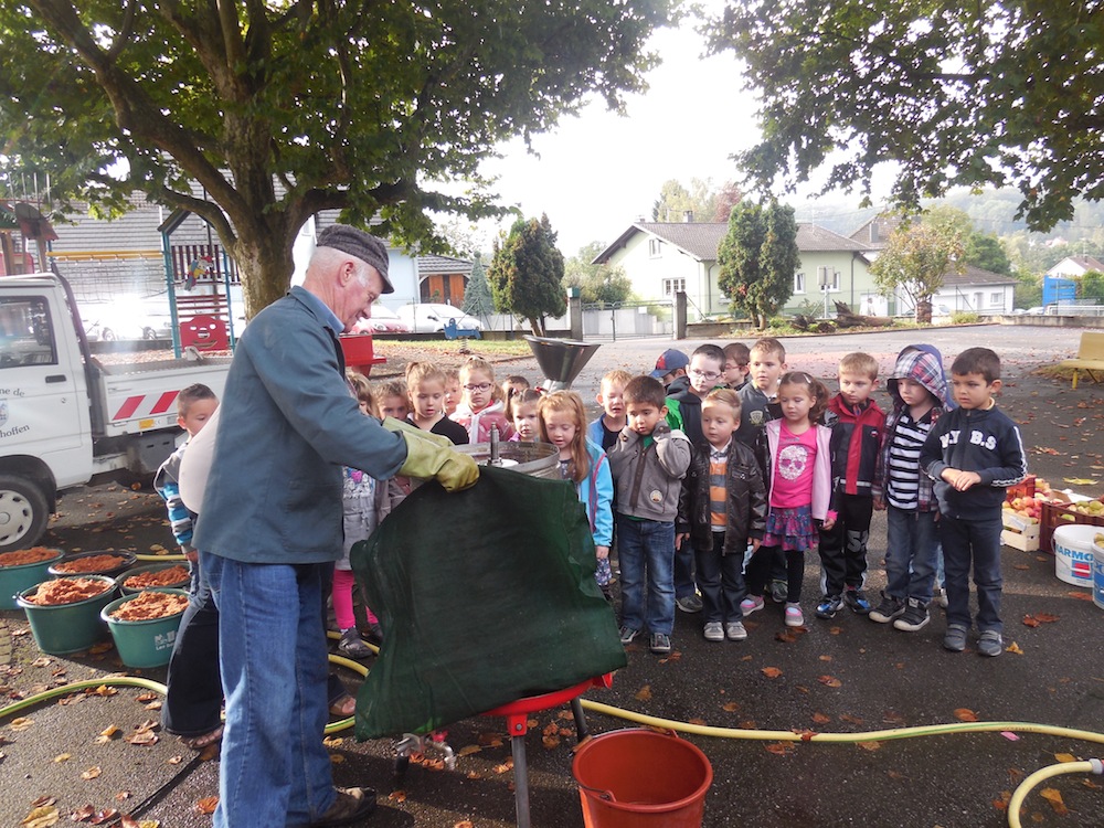 La classe des grandes section bilingue de l'école maternelle de Waldighoffen le jour où ils ont fait du jus de pomme.