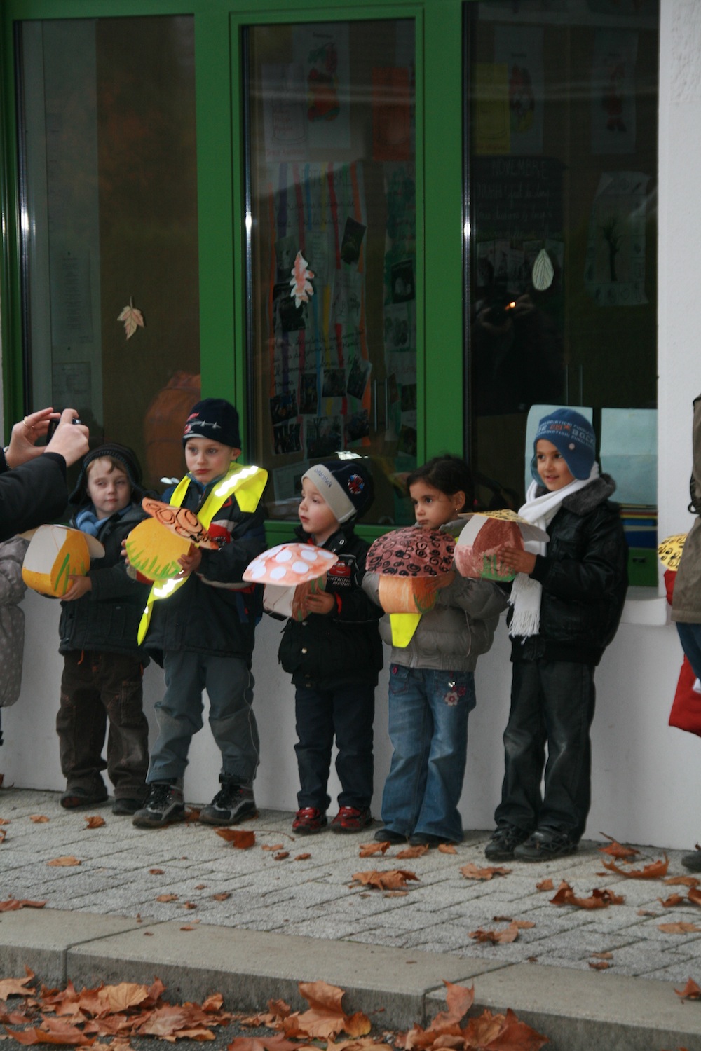 5 élèves des classes bilingue de Waldighoffen avec leur lampion dans les main pour les montrer aux parents lors de la Saint Martin le 10 novembre 2011.