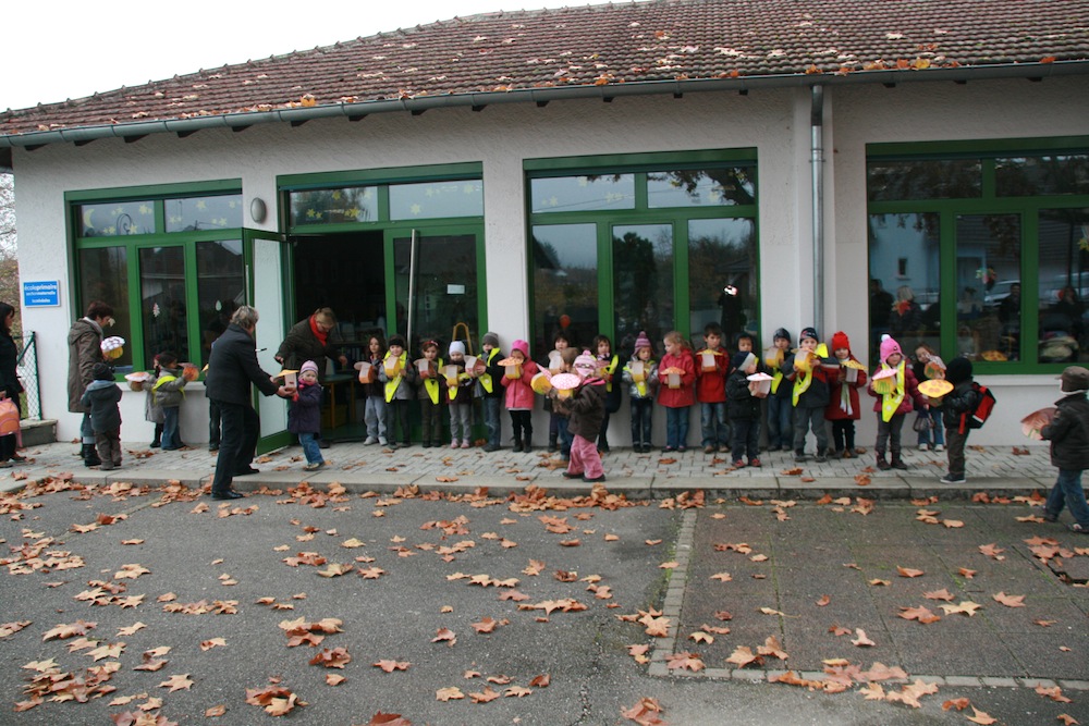 Les élèves des 2 classes bilingue de la maternelle de Waldighoffen en train de se mettre en rang pour chanter les chants de la Saint Martin.