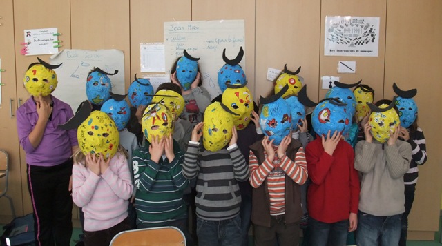 Voici les masques réalisés par la classe de CP-CE1 monolingue.