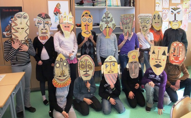 Voici les masques réalisés par la classe de CM2 monolingue.