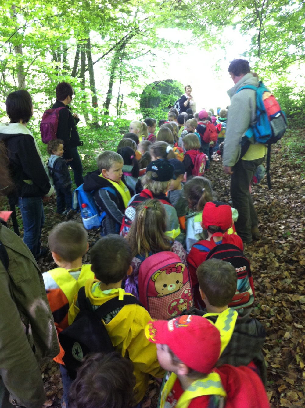 La maîtresse donne les dernières instructions aux élèves avant de repartir pour l'école, à la fin de cette journée de sortie du 14 mai 2013.