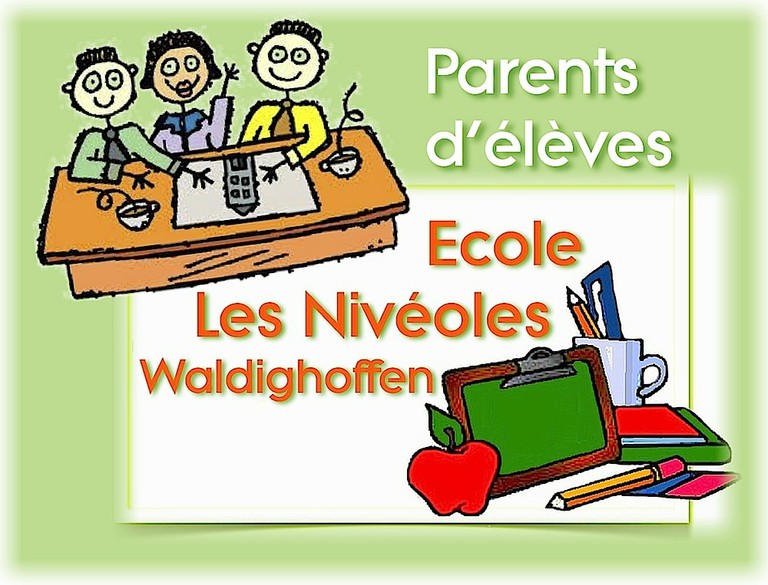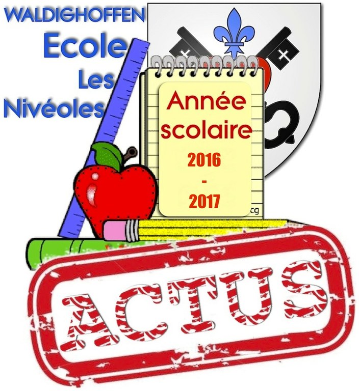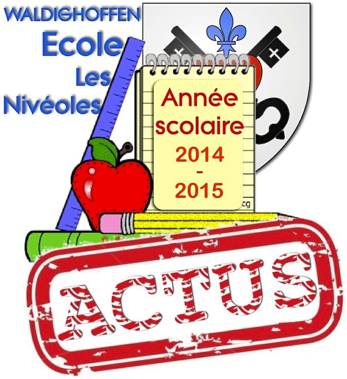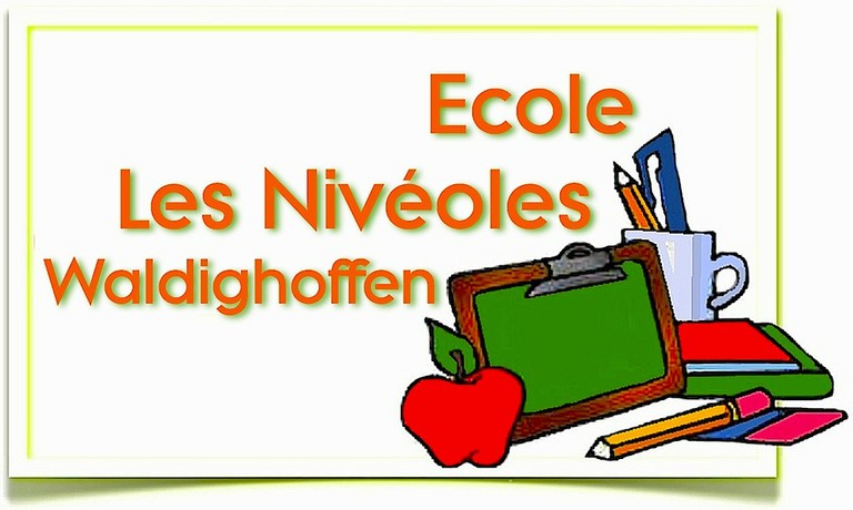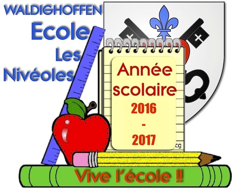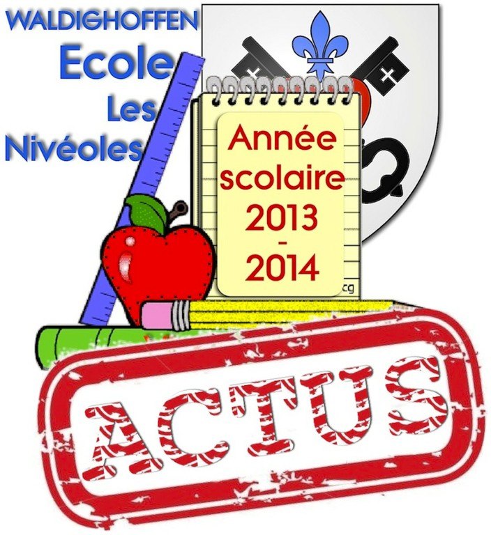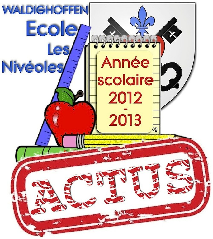- Visuel contenant le blason de Waldighoffen, un crayon, une pomme, une règle, le nom de l'école les Nivéoles et l'année scolaire 2012/2013