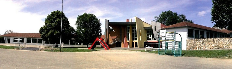 - Photo de l'ensemble de l'école de Waldighoffen, à gauche l'école élémentaire et à droite l'école maternelle. Au milieu, de plein pied, la salle associative et au premier, la salle de psychomotricité de la maternelle et une salle de classe.