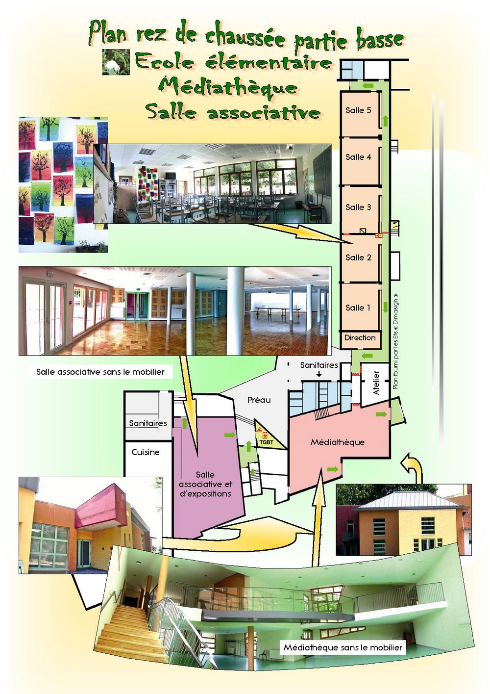 - Document montrant le plan et des photos en situation, de l'école primaire. Vous y trouvez aussi la médiathèque et la salle associative. Partie basse du Forum à Waldighoffen.