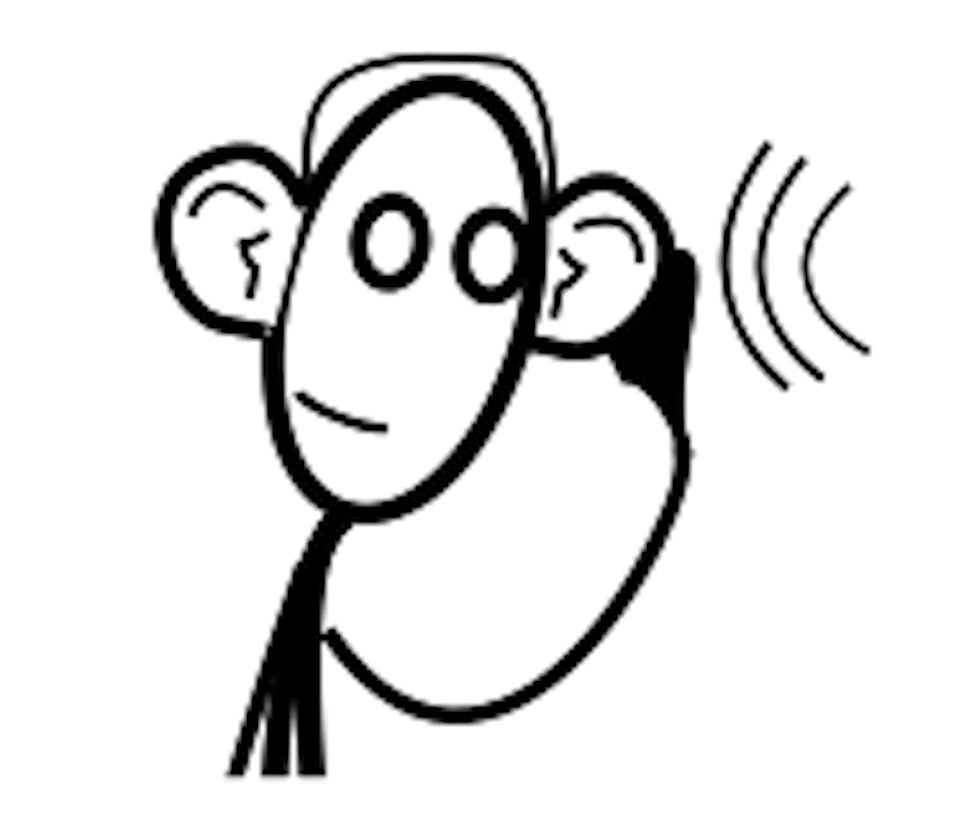 Caricature d'un petit bonhomme écoutant en tendant l'oreille.