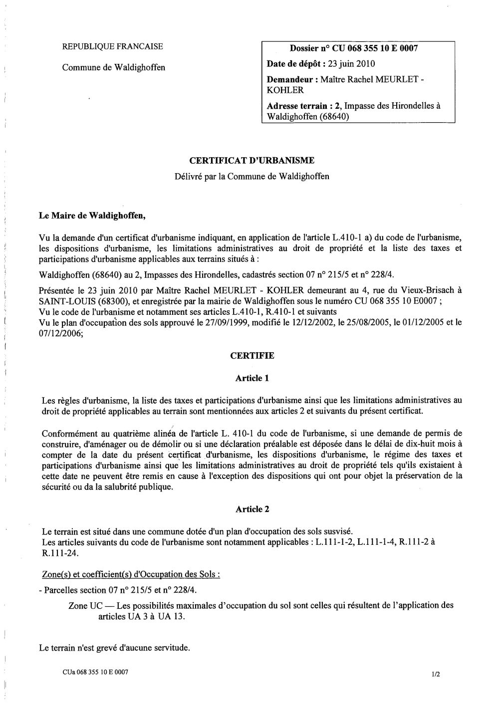 Certificat d'urbanisme CU10E0007 Meurlet Kohler p1