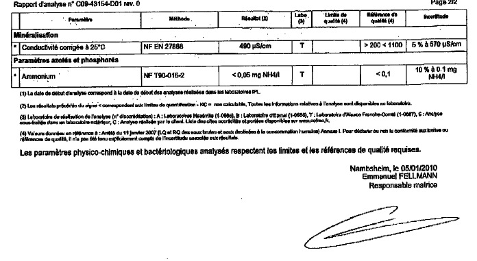 Rapport d'analyse d'eau n°C09-43154-D01 du 24/12/2009-2