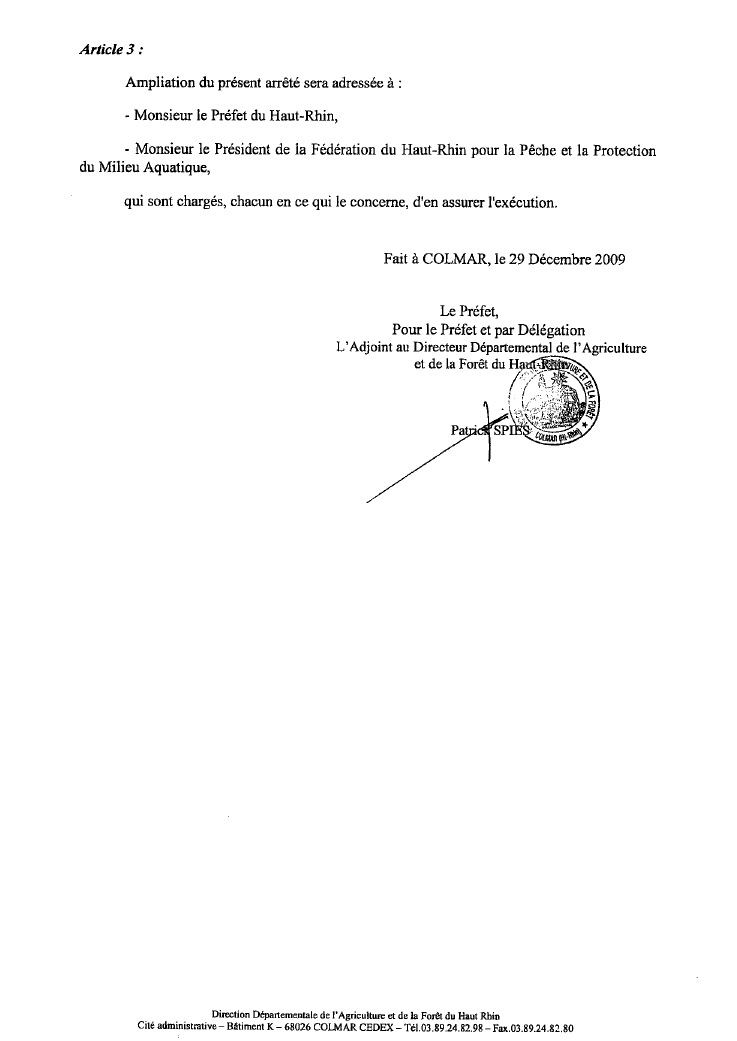 Vous êtes ici : Accueil Mairie Affichage public Annexes affichage public 2010 Arrêté préfectoral agrément trésoriers AAPPMA 68-2