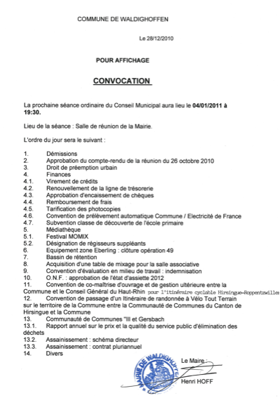 Vous êtes ici : Accueil Mairie Affichage public Annexes affichage public 2010 Convocation Conseil Municipal janvier 2011