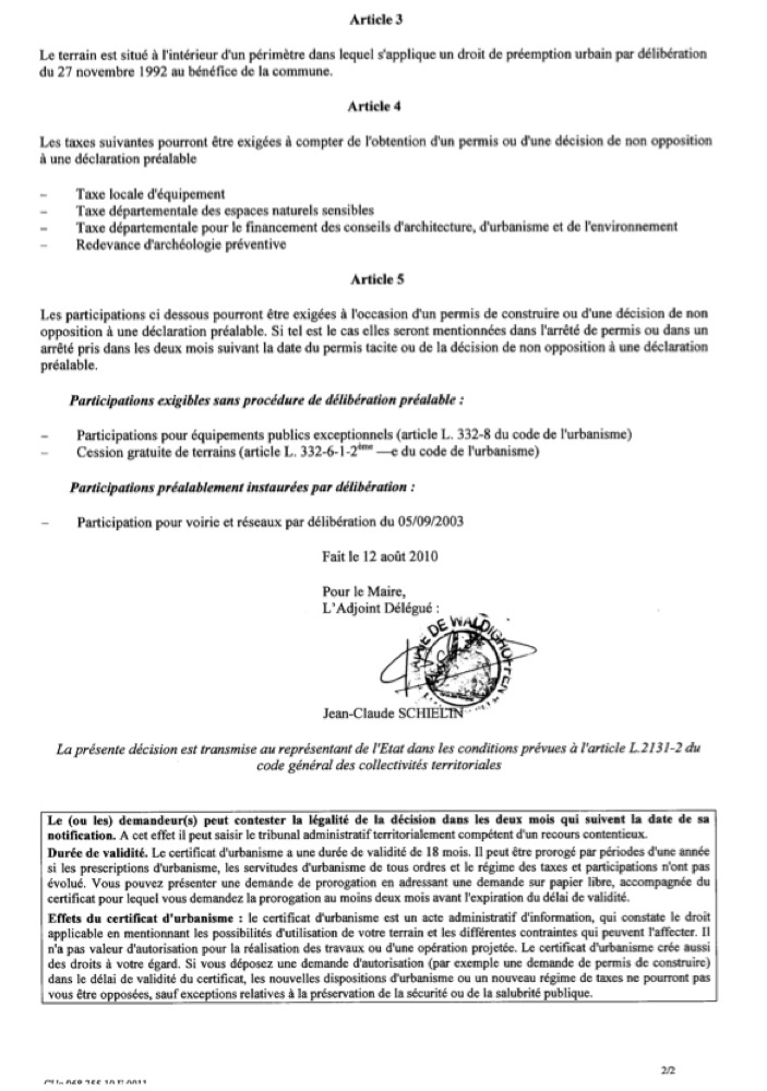 Vous êtes ici : Accueil Mairie Affichage public Annexes affichage public 2010 Réponse CU 10E0011 page 2
