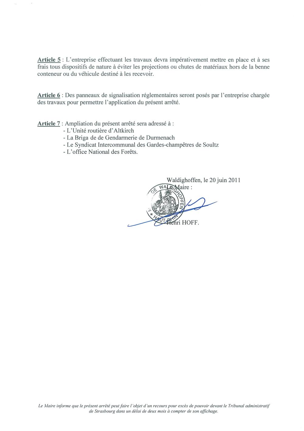 Arrêté du Maire n°2011/43 portant règlement de la circulation