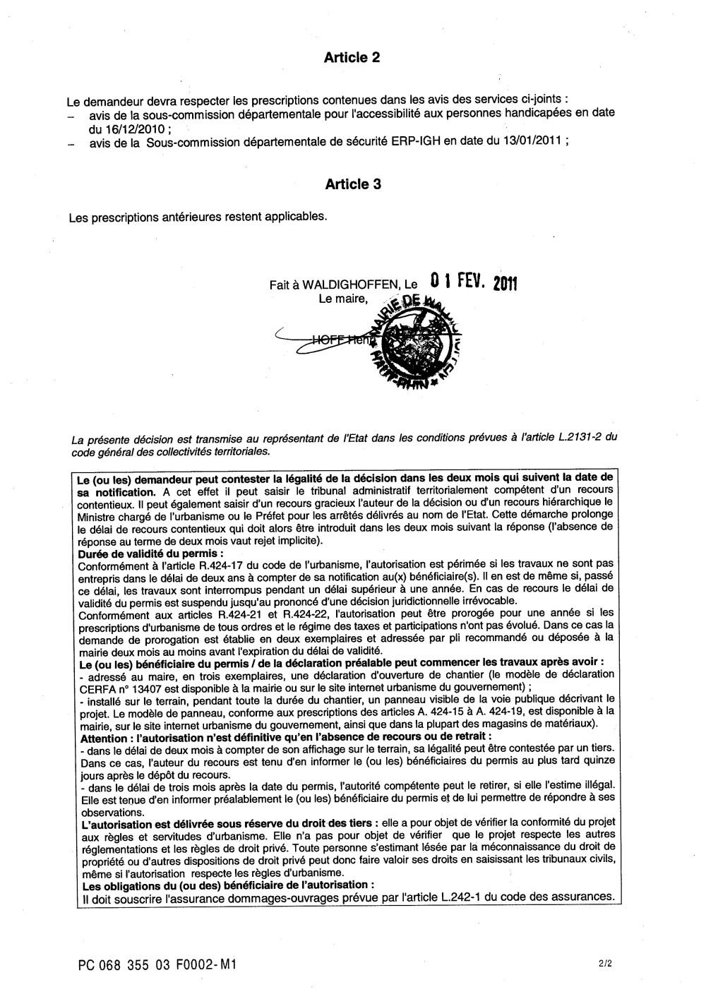 Arrêté accordant le permis de construire modificatif n°03F0002-M1 du G.B.S.